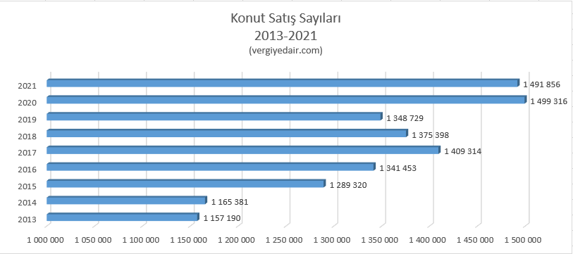 TÜİK tarafından yayımlanan istatistiklere göre, 2013-2021 döneminde yıllık konut satışı bir milyonun altına hiç düşmemiştir. 2021 yılında 1.491.856 adet konut satış işlemi gerçekleşmiş.