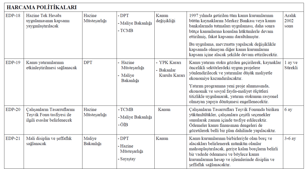 03 Ocak 2003 Acil Eylem Planı madde EDP-39