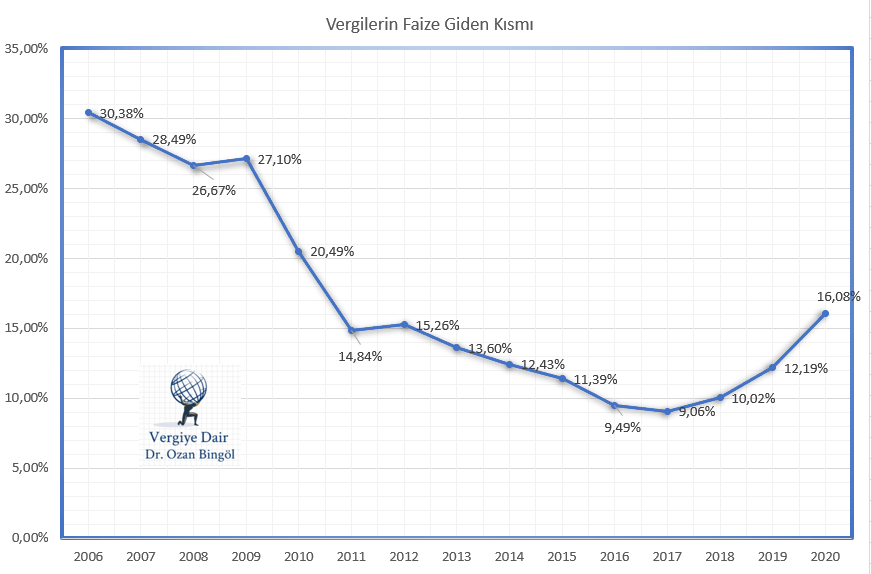 Vergilerimizden ödenen faizlerin yıllar itibariyle dağılımı aşağıda sunulmuştur.