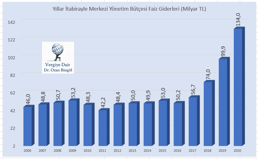 Şekil 1: Yıllar İtibariyle Merkezi Yönetim Faiz Giderleri (2006-2020)