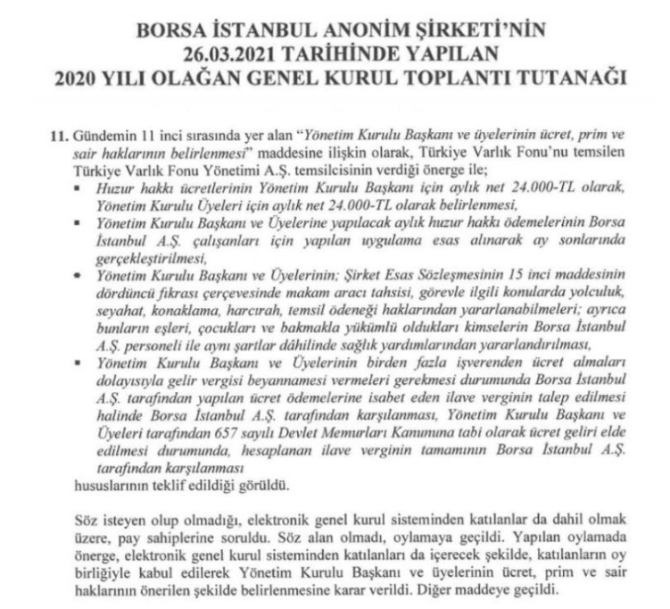 • Yönetim Kurulu başkan ve üyelerine makam aracı tahsisi yapılacaktır.