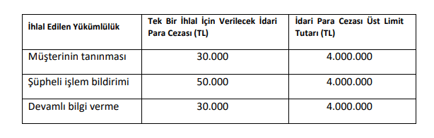 olarak sınırlandı. Bu yükümlülüklere aykırı davranan kripto varlık hizmet sağlayıcılarına ihlal ettikleri yükümlülükler için verilecek cezanın alt ve üst limitlerini de aşağıdaki gibi belirtti.