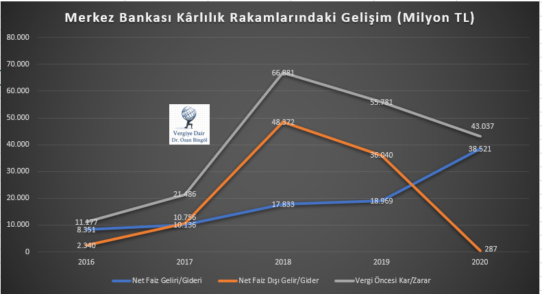 Merkez Bankasının Net Faiz Dışı Gelir/Gider performansı önceki yıllara benzer şekilde gerçekleşse idi bugün Merkez Bankasının 2020 yılındaki 43 milyar liralık vergi öncesi kârından değil; 80 milyar TL civarındaki tarihi rekor “kârlılık” rakamlarından bahsediyor olacaktık. Bu ise Hazineye aktarılacak rakamı 40 milyar civarı artıracak idi.