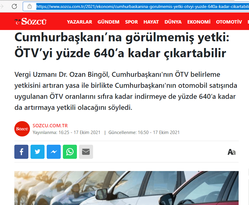 Peki ÖTV Kanununda Cumhurbaşkanına verilmiş bazı yetkilerin “bir katına kadar”‘dan “üç katına kadar” şeklinde artırılması ne anlama geliyor? Hangi ÖTV kalemlerinde nasıl bir etki doğurur? Bu sorulara aşağıda cevap vereceğim.