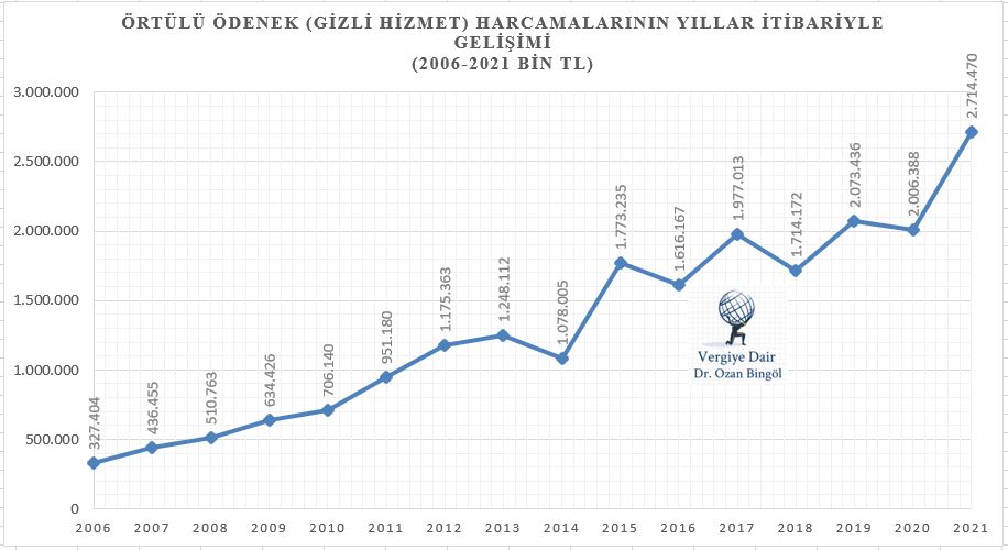 Örtülü ödenek harcamalarındaki trendin belirgin bir artış yönünde olduğu özellikle 2014 ve sonrasında artış hızının daha da belirgin hale geldiği görülmektedir. 2021 yılında ise 2,7 milyar liralık tutarla rekor kırmıştır.