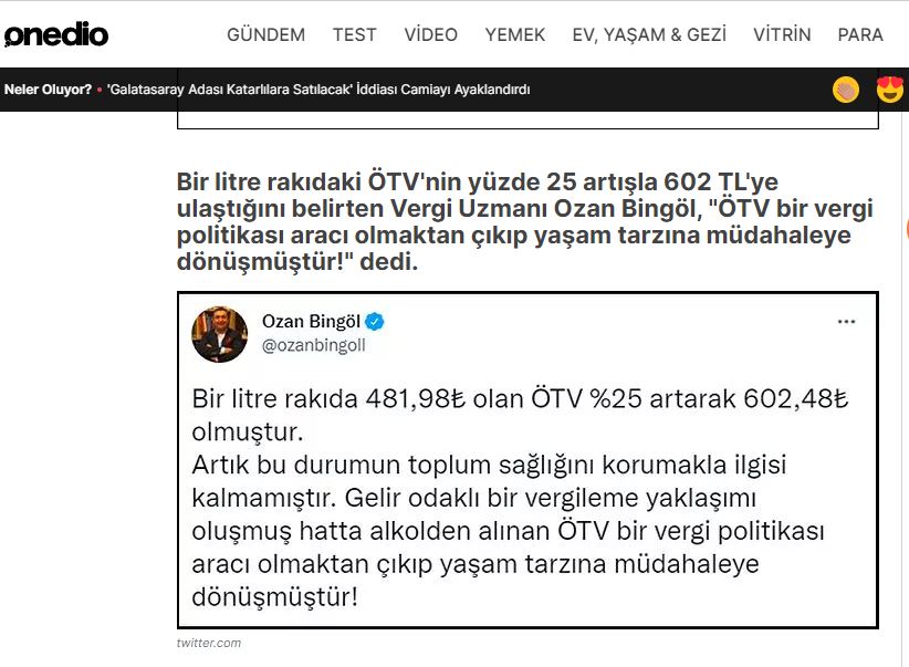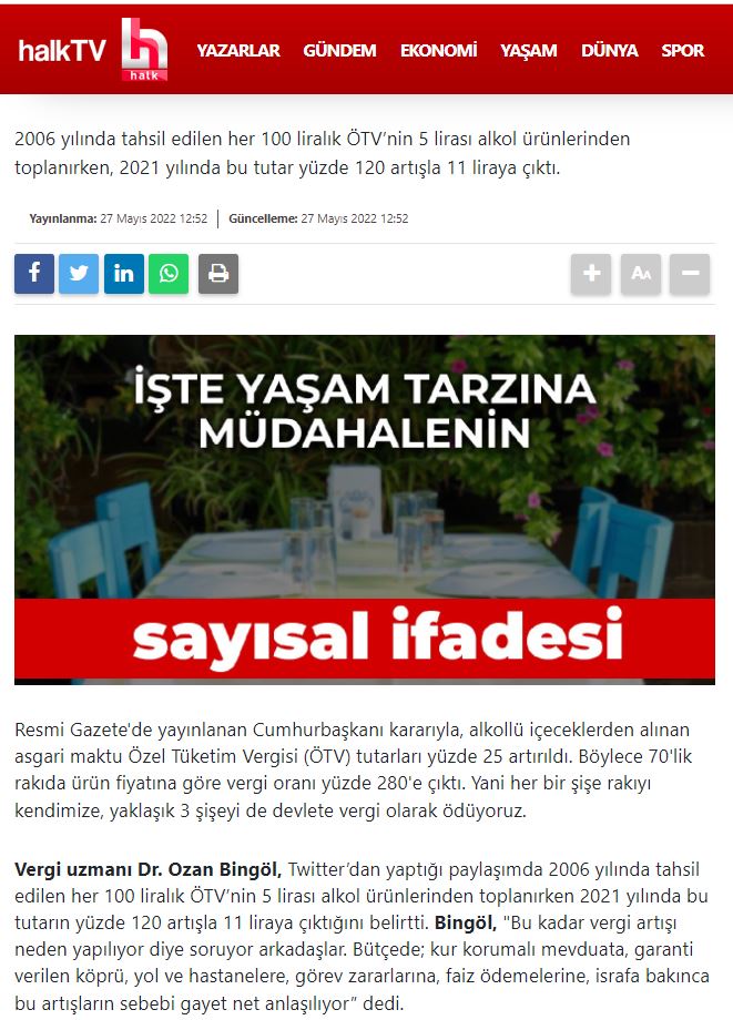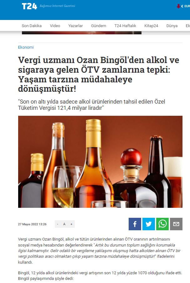 Ayrıca alkol ürünlerindeki yüksek vergilemenin toplum sağlığını korumak ile bir ilgisi kalmamıştır. Temelde sadece “gelir odaklı” bir vergileme yaklaşımı oluşmuş ve hatta alkolden alınan ÖTV, bir vergi politikası aracı olmaktan çıkıp doğrudan yaşam tarzına müdahale aracına dönüşmüştür. Ve hatta bu eşik de aşılmıştır.