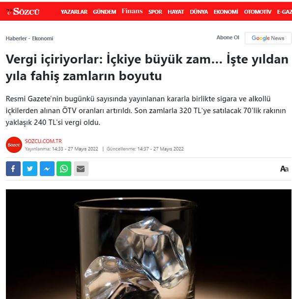 Alkollü içecekler üzerinden alınan “maktu vergi”, Özel Tüketim Vergisi (ÖTV) Kanununun 12 inci maddesinin 3 üncü fıkrası uyarınca 2013 yılından bu yana altı ayda bir otomatik olarak artırılmaktadır. Ancak 27 Mayıs 2022 tarihli Resmi Gazetede yayımlanan Cumhurbaşkanı kararı ile bu yılın ikinci altı ayı için (Temmuz-Aralık) uygulanacak artış öne çekilmiş oldu. Bu durumun başkaca sebepleri bulunmaktadır.