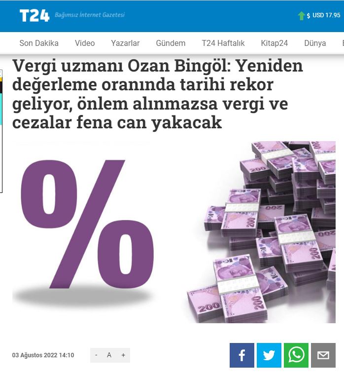 T24: Vergi uzmanı Ozan Bingöl: Yeniden değerleme oranında tarihi rekor geliyor, önlem alınmazsa vergi ve cezalar fena can yakacak