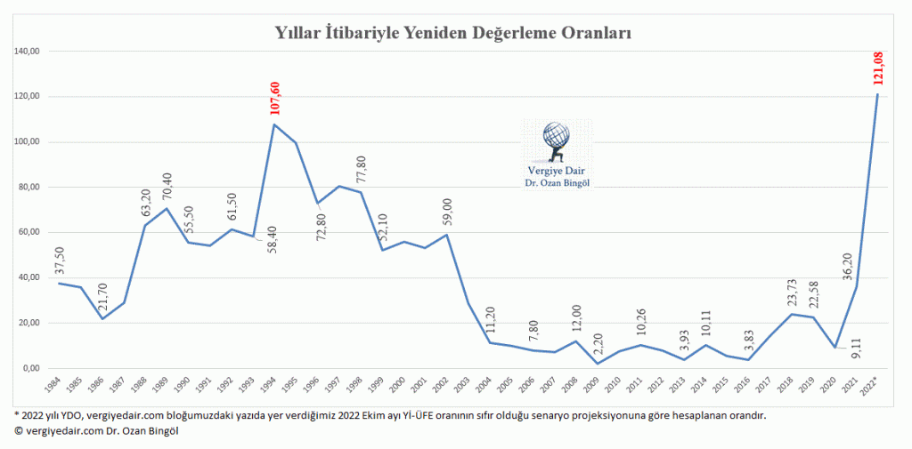 Enflasyonun kısa sürede bu denli hızlı artışı sonucu bu yıl yeniden değerleme oranı da tarihi rekor seviyelere ulaşacak. Yeniden değerleme oranının mevzuatımıza girdiği 1984 yılından bu yana en yüksek seviyesini görmüş olacak.
