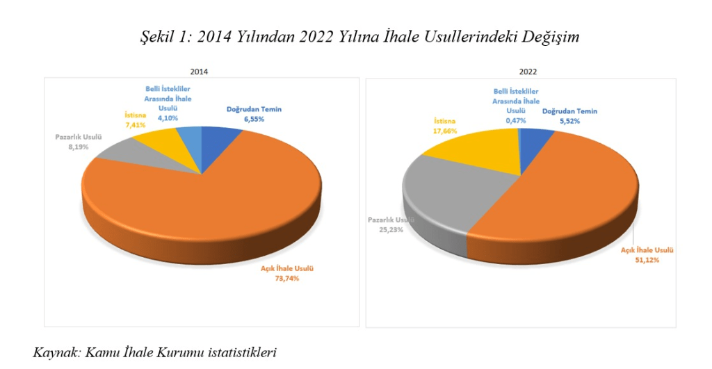Kamu ihalelerinde açık ihale usulüne daha az başvurulması, istisna ve pazarlık usulünün genel ihale usulü haline gelmesi kamu yönetiminde şeffaflığın her geçen gün geriye gittiğini göstermektedir. Aşağıda 2014 yılından 2022 yılına kamu ihalelerinde şeffaflığın nasıl bir tür karartmaya dönüştüğü açık bir şekilde görülmektedir.