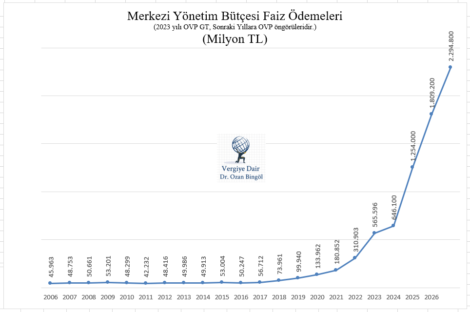 Faizi karşıyız denilen dönemde Merkezi Yönetim Bütçesinden yapılan faiz giderlerinin astronomik tutarlara çıkması 2026 yılında 2 trilyon 294 milyar liraya ulaşması kabul edilebilir bir durum değildir. Eskilerin “Ben ne söylerim, tamburam ne çalar?” (Men çe guyem, tamburem çe zened?) deyiminin tam karşılığı söz konusu sanki.