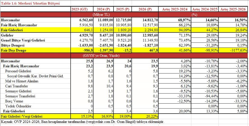 Tablo 1: OVP 2024-2026 Merkezi Yönetim Bütçesi