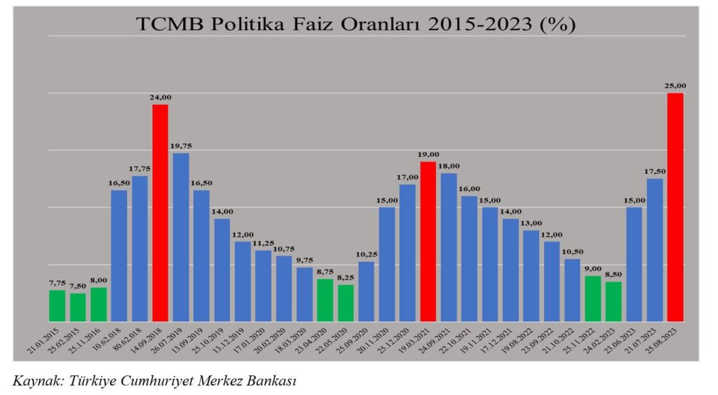 Seçim öncesinde faize savaş açılmış şekilde bir söylem söz konusuydu. Faiz tek haneye inecek dendi. Ancak tek haneye inen tek faiz TCMB politika faizi oldu. Ancak iki yılda %19’dan %8,5’a indirilen TCMB politika faizi üç ayda %25’in üzerine çıkıverdi.