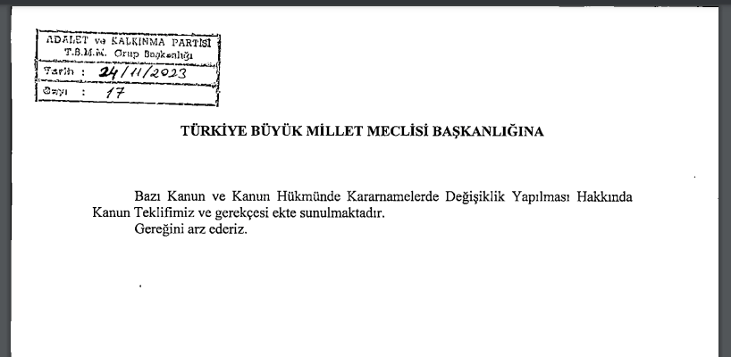 Pek çok konuda düzenleme öngören yeni torba kanun teklifi 24.11.2023 tarihinde Meclis Başkanlığına sunuldu. Teklifle;