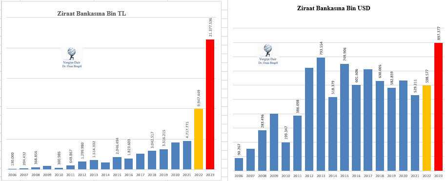 Yukarıdaki verilerden görüldüğü üzere Ziraat Bankasına 2006 yılında yapılan göre zararı 2023 yılına geldiğimizde dolar bazında bile neredeyse 10 kat artmıştır. Sayın Hazine ve Maliye Bakanının bunun izahını yapması, kamuoyunu aydınlatması beklenir.