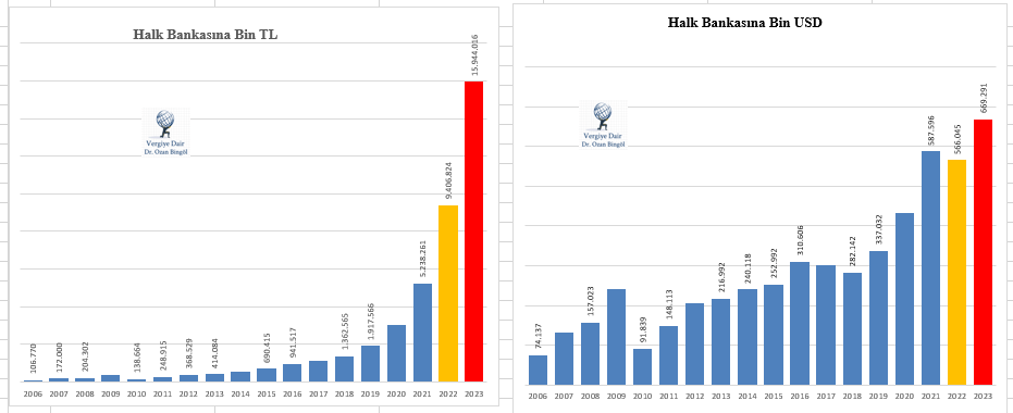Halk Bankasına yapılan görev zararı ödemeleri de 2006 yılına göre 2023 yılı sonu itibariyle dolar bazında 9 katın üzerinde gerçekleşmiştir.