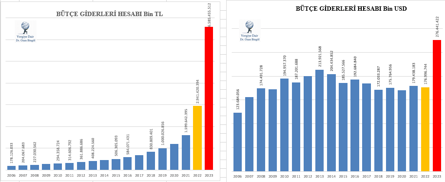 Şekil 1: Merkezi Yönetim Bütçe Giderleri 2006-2023 (1.000 TL ve 1.000 USD)