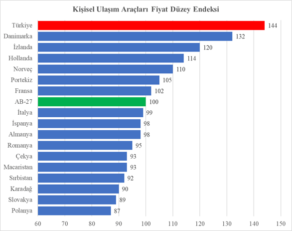 Şekil 2: Kişisel ulaşım araçları fiyat düzeyi endeksi