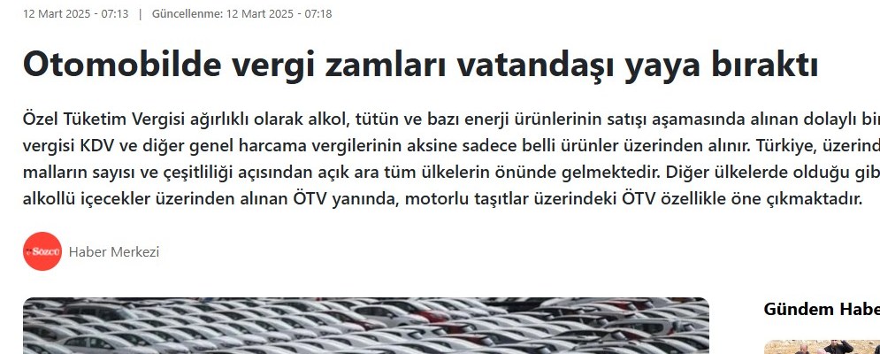 Sonuçta, otomobile yapılan açık ve gizli zamlar Maliyenin kasasını doldururken, vatandaşın cebini boşaltmakta ve vatandaşı yaya bırakmaktadır.